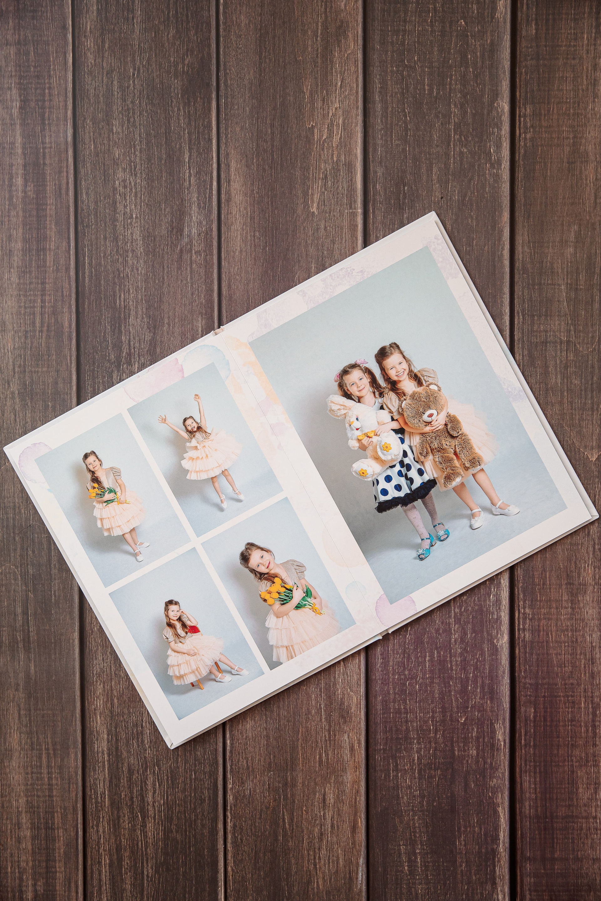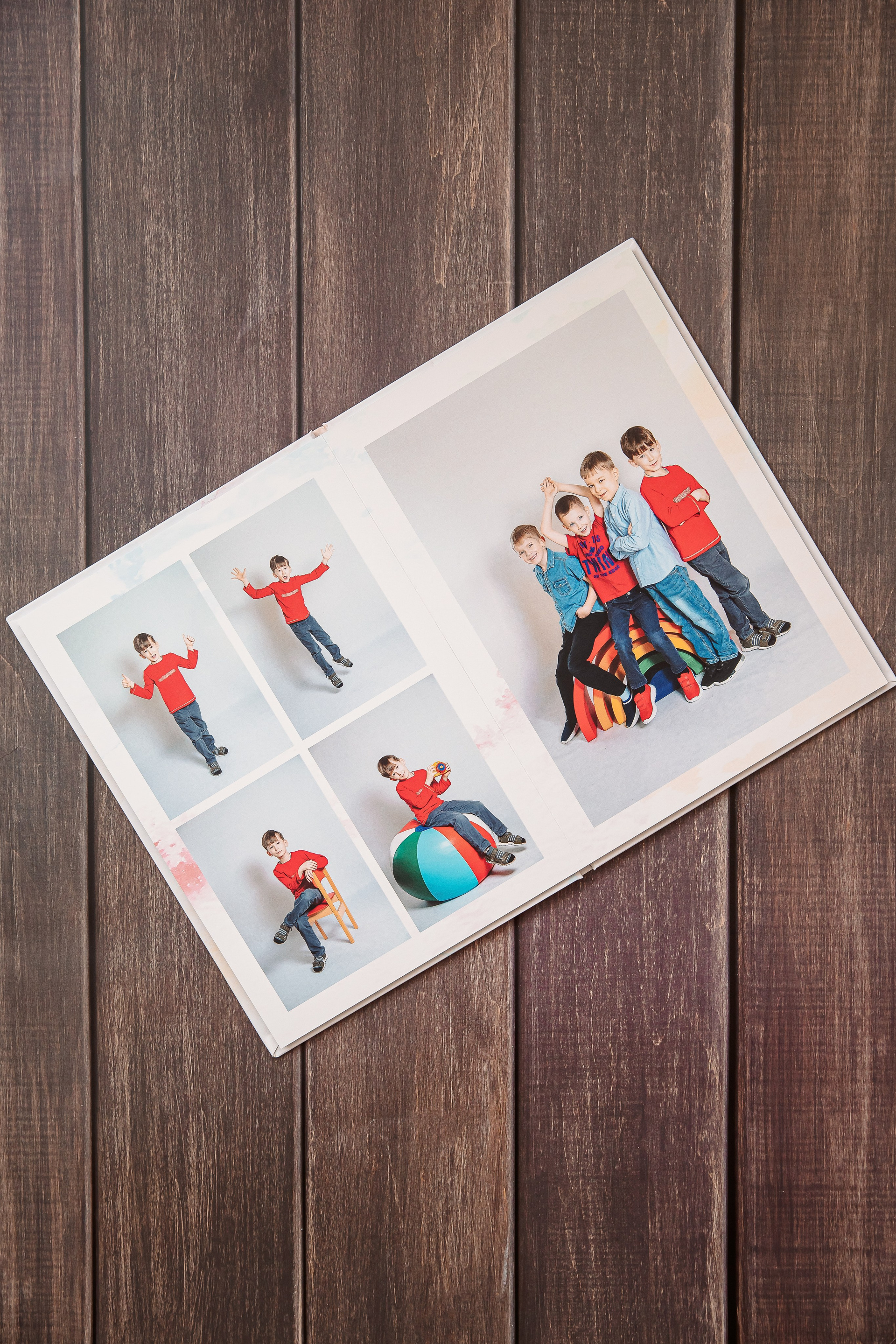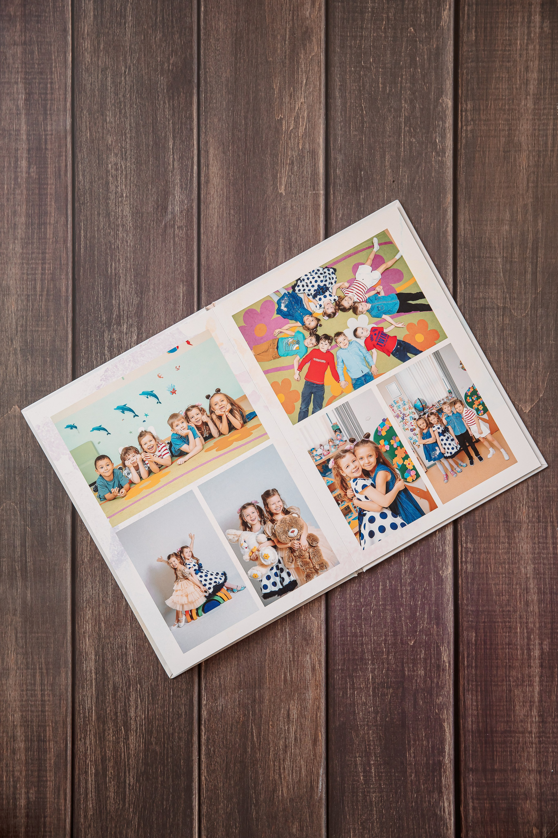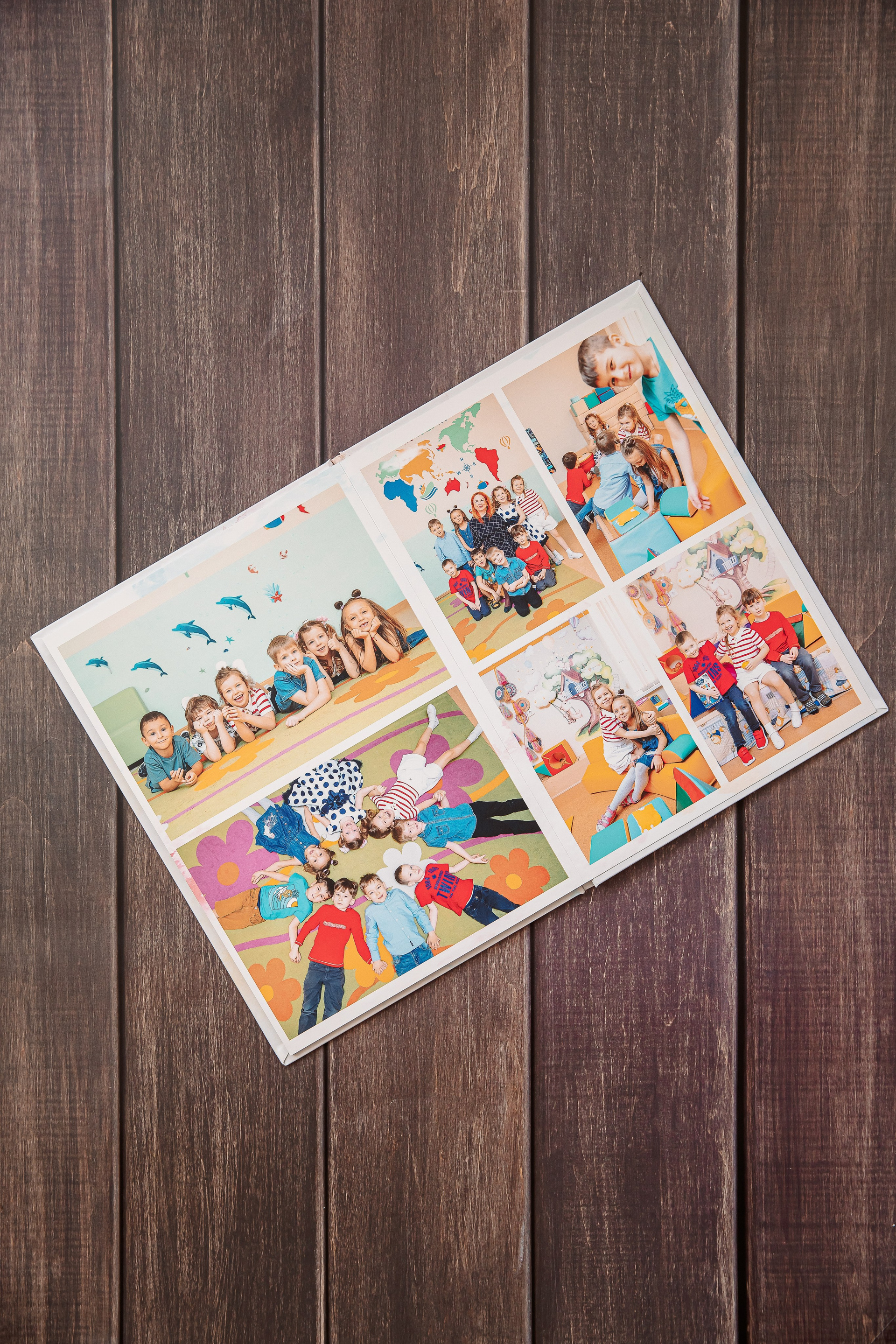 Эти альбомы были сделаны для выпускников группы Монтессори, т. е. разновозрастной группы. Как правило в таких группах выпускается небольшое количество детей. В данной группе выпускались 6 детей (и 2 альбома нужно было сделать в подарок воспитателям). Для съемки нам потребовалось около 3 часов. За это время успели сделать разные индивидуальные портреты каждому выпускнику и воспитателям, отснять видео для оживления портретов педагогов, а также снять немного кадров с друзьями в группе.
