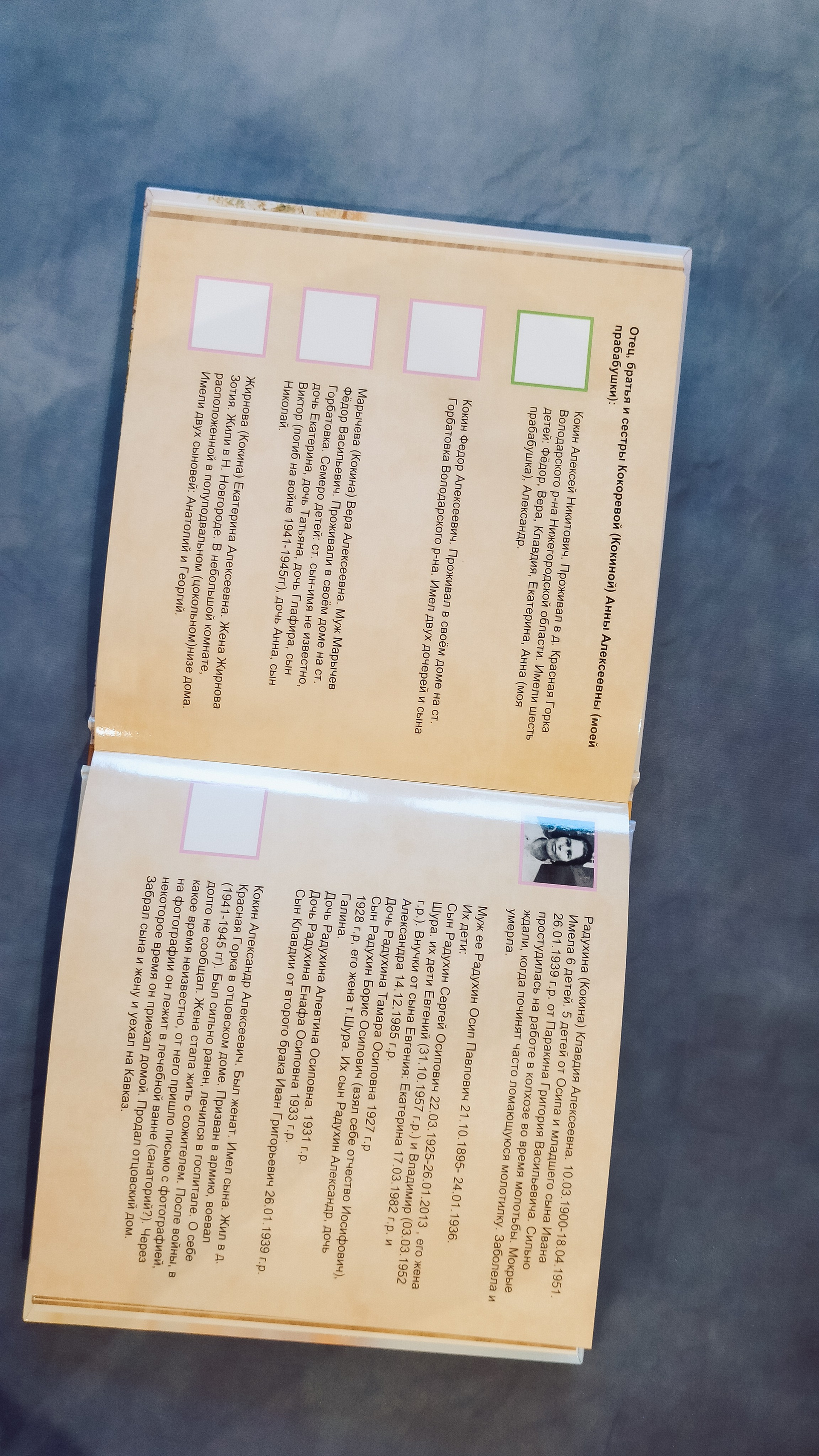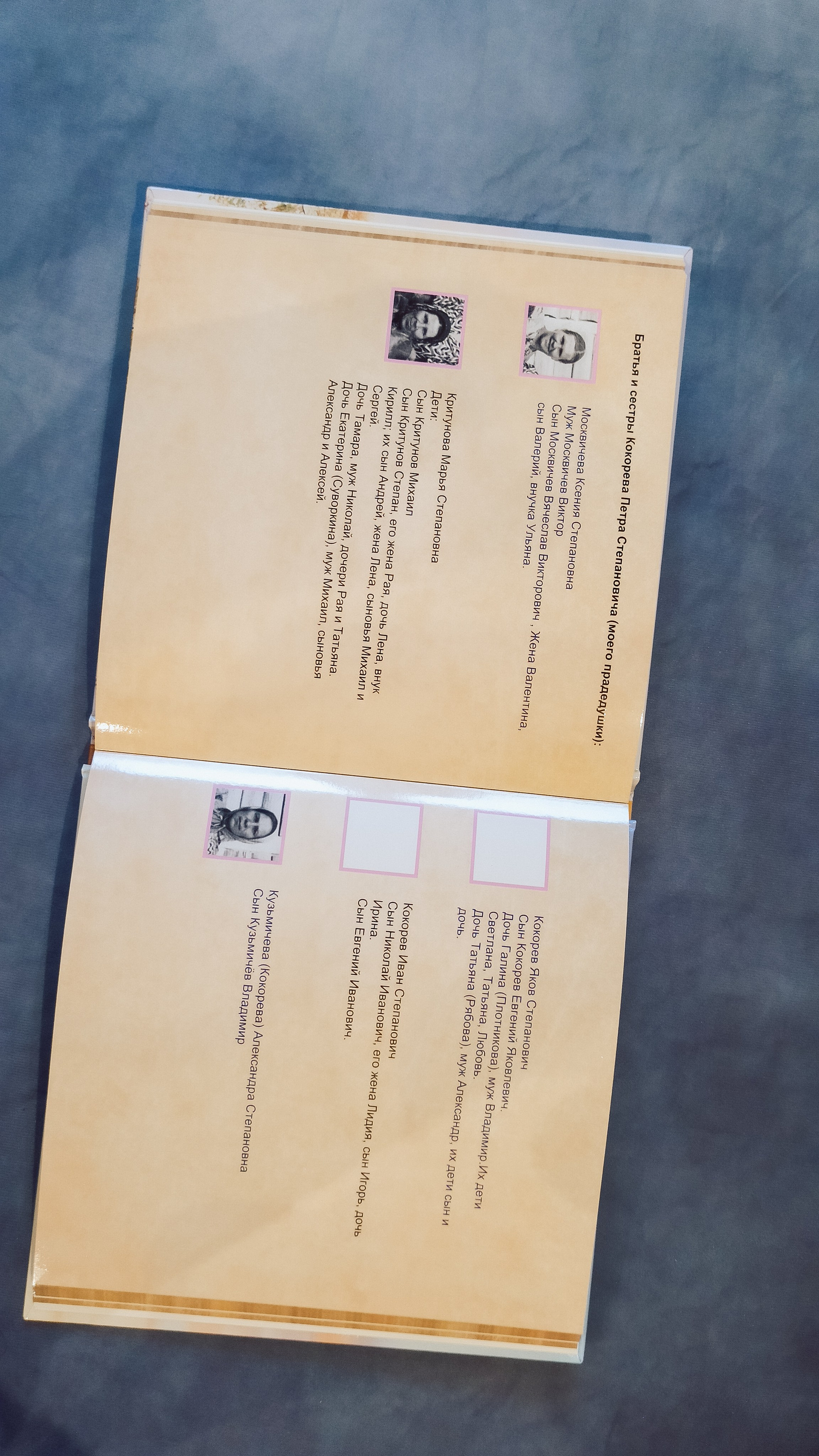 В этой книге я постаралась собрать максимально полную информацию о моем роде. Конечно, я сделала это с помощью моих родных. Опрашивала, кто что может рассказать, у кого какие старые фотографии есть. Даже нашла во ВКонтакте дальнего родственника и через него узнала про моего прапрадедушку и его детей!!!